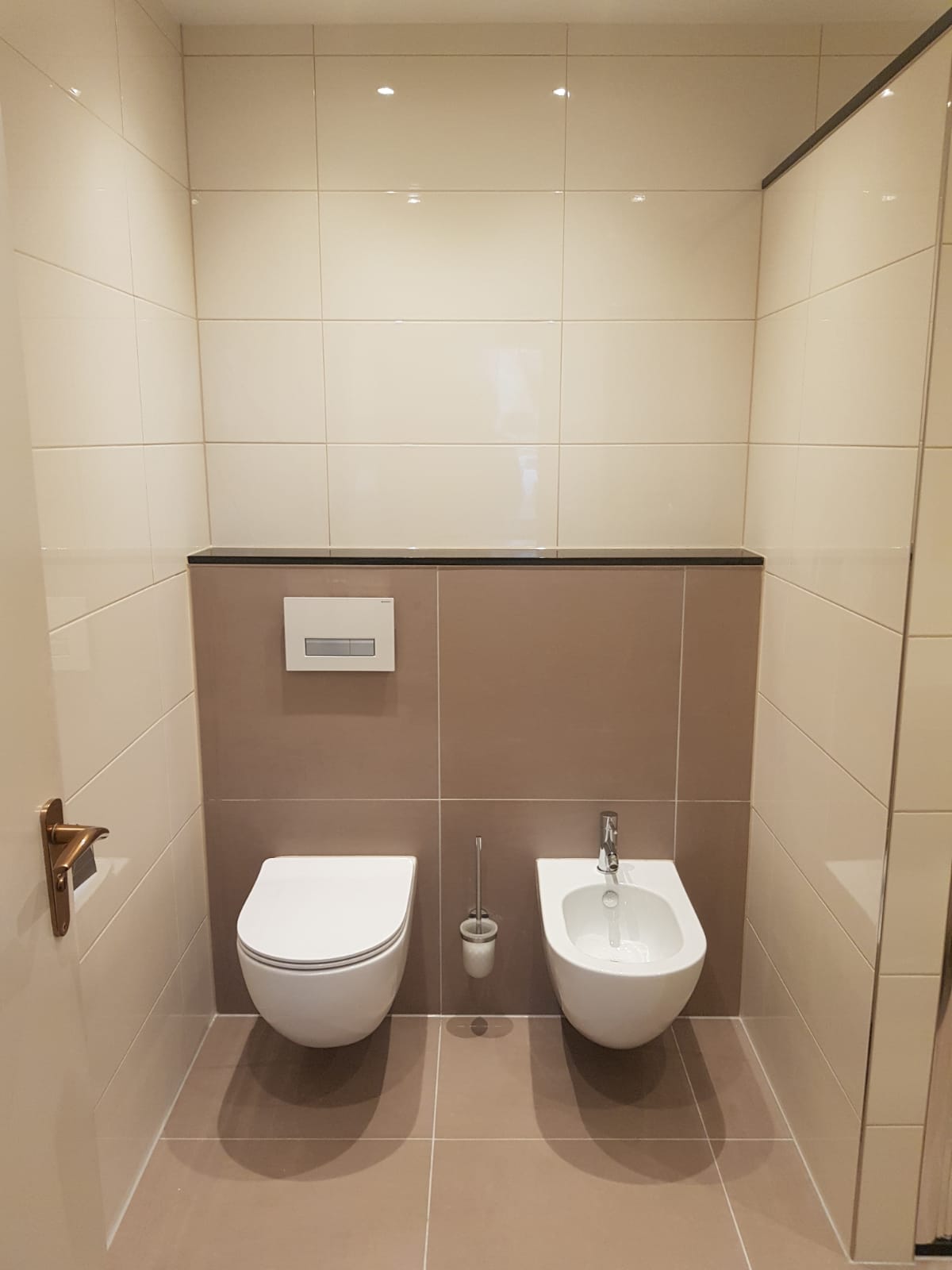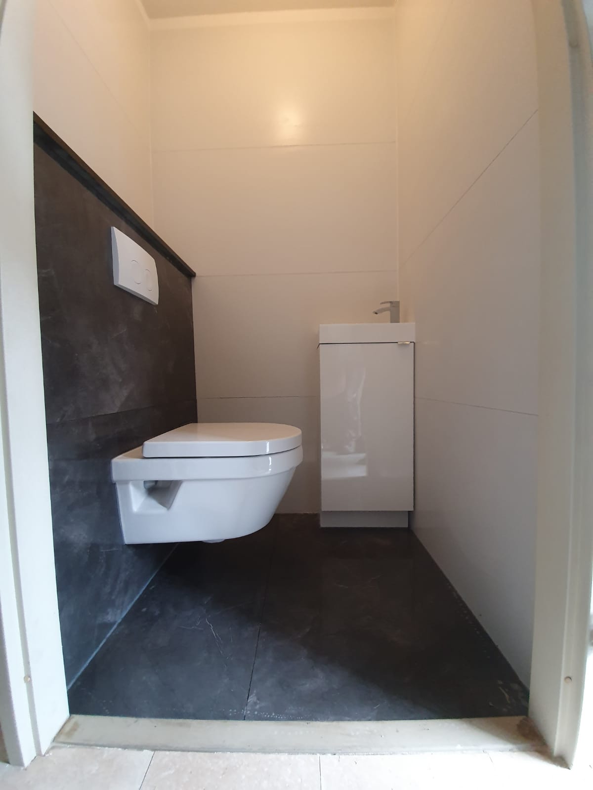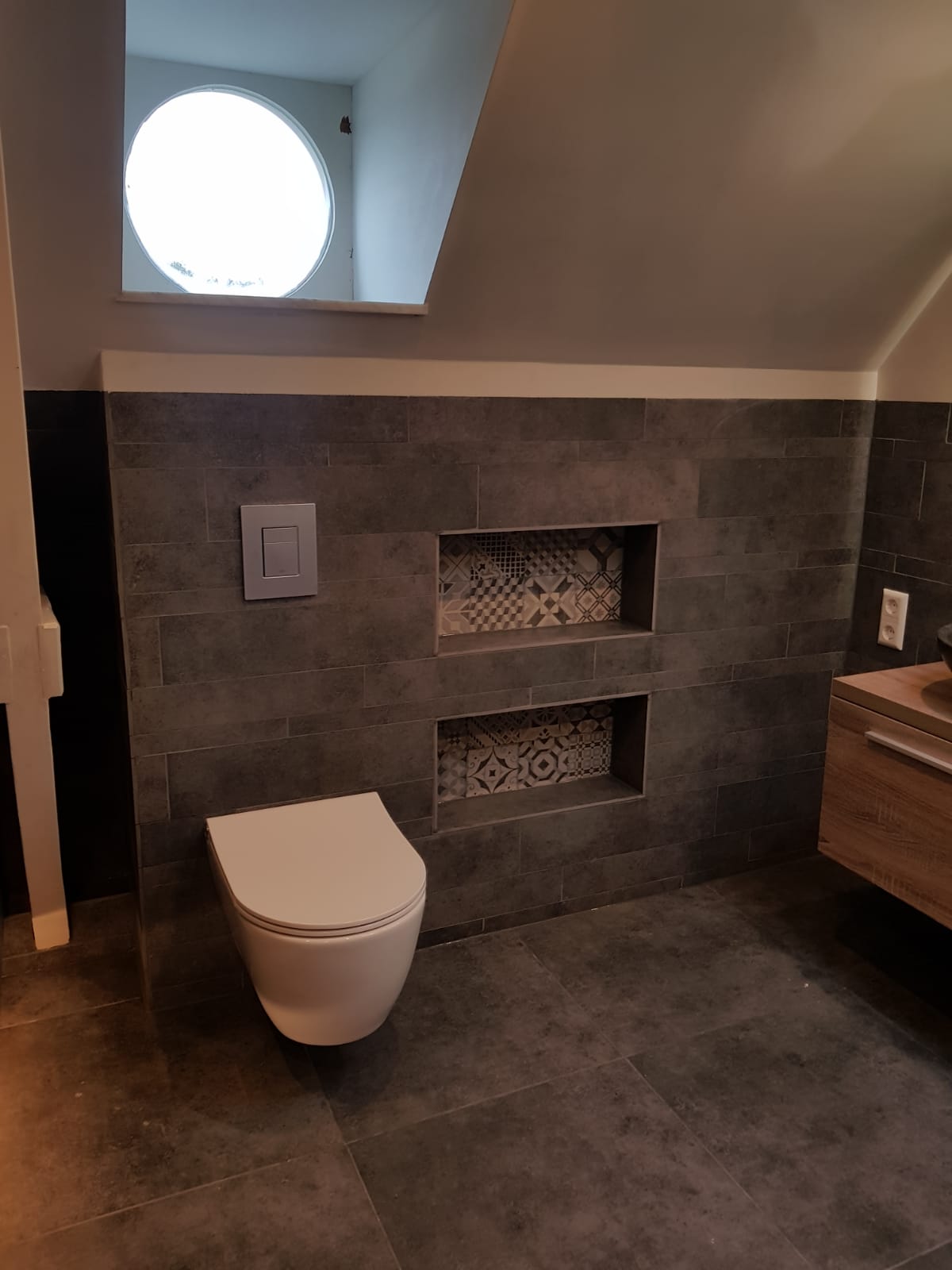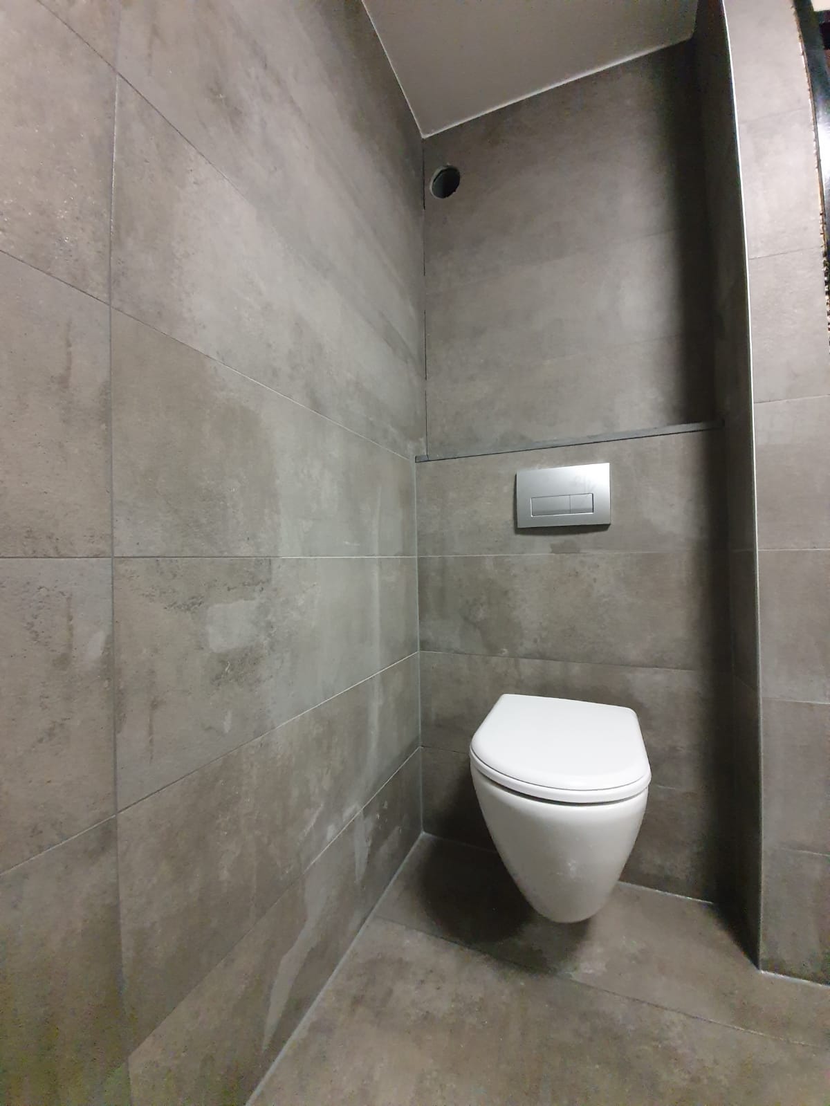 Inbouwtoilet met gecreerde ruimtes in de muur